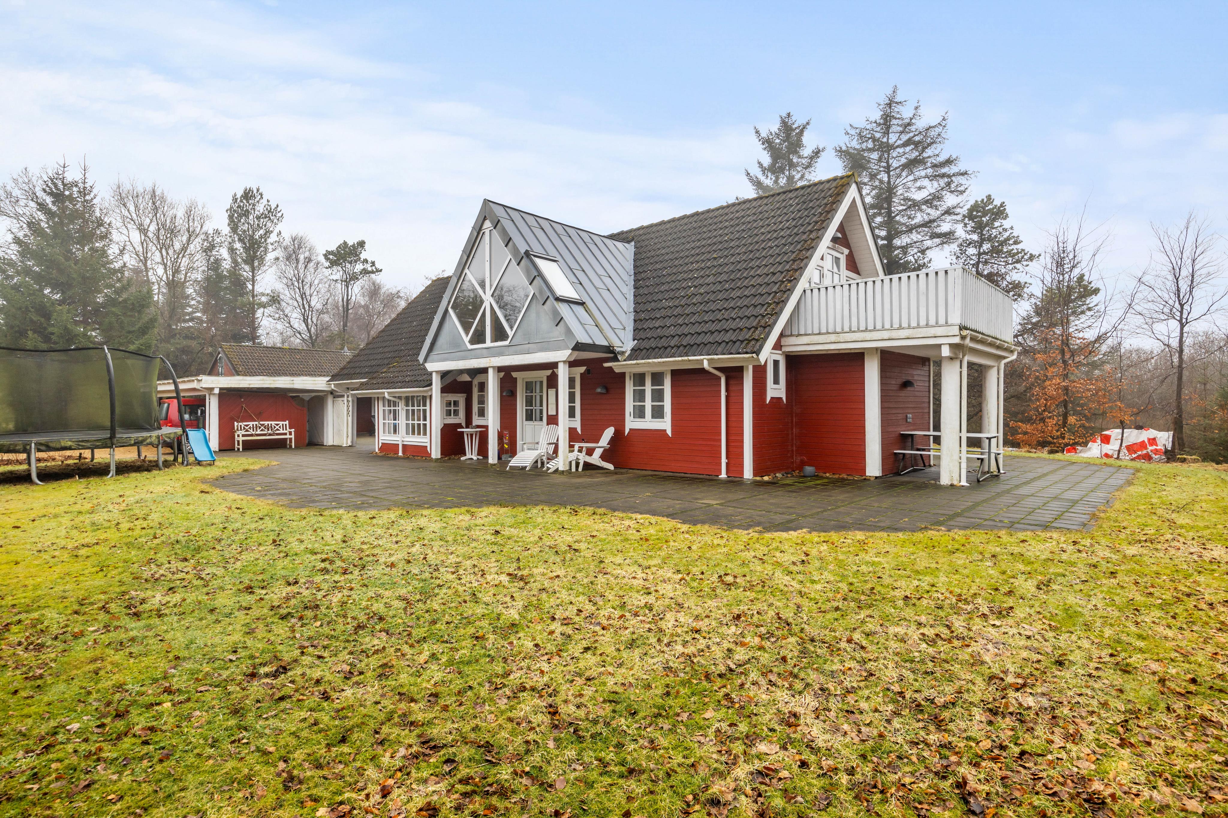 On the 3250 sqm natural plot, you can enjoy the beauty of the surroundings to the fullest. The spacious outdoor area invites you to spend convivial hours together. Relax on the sun loungers or in the comfortable garden furniture, light up the grill, and enjoy a delicious meal in the open air. Depending on the position of the sun and the wind direction, you can use the various terrace areas of the holiday home, some of which are sheltered and some covered.