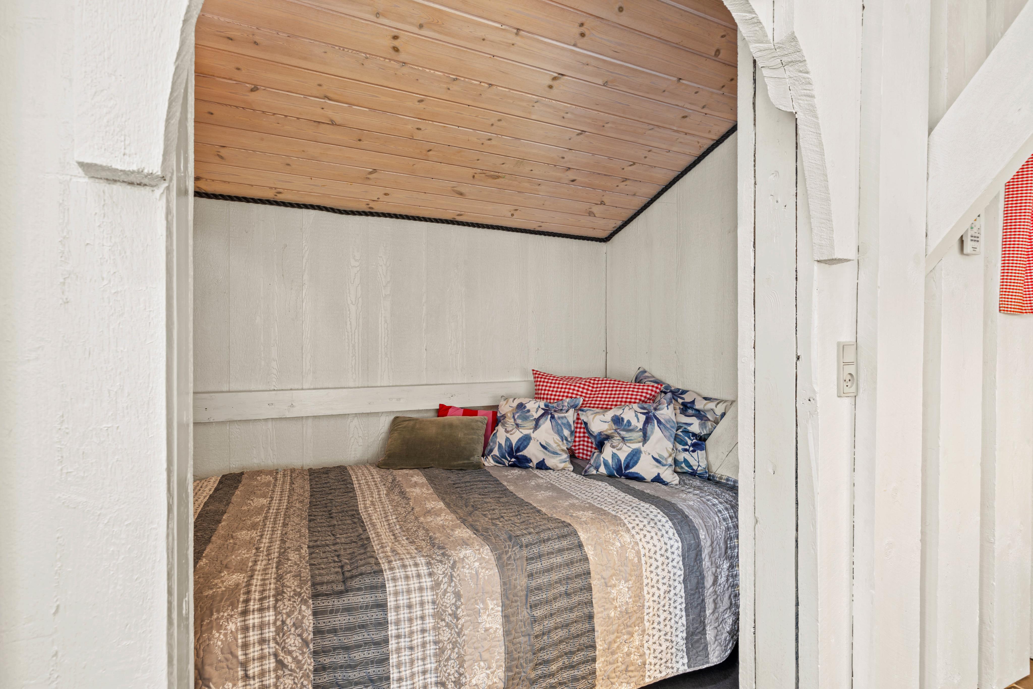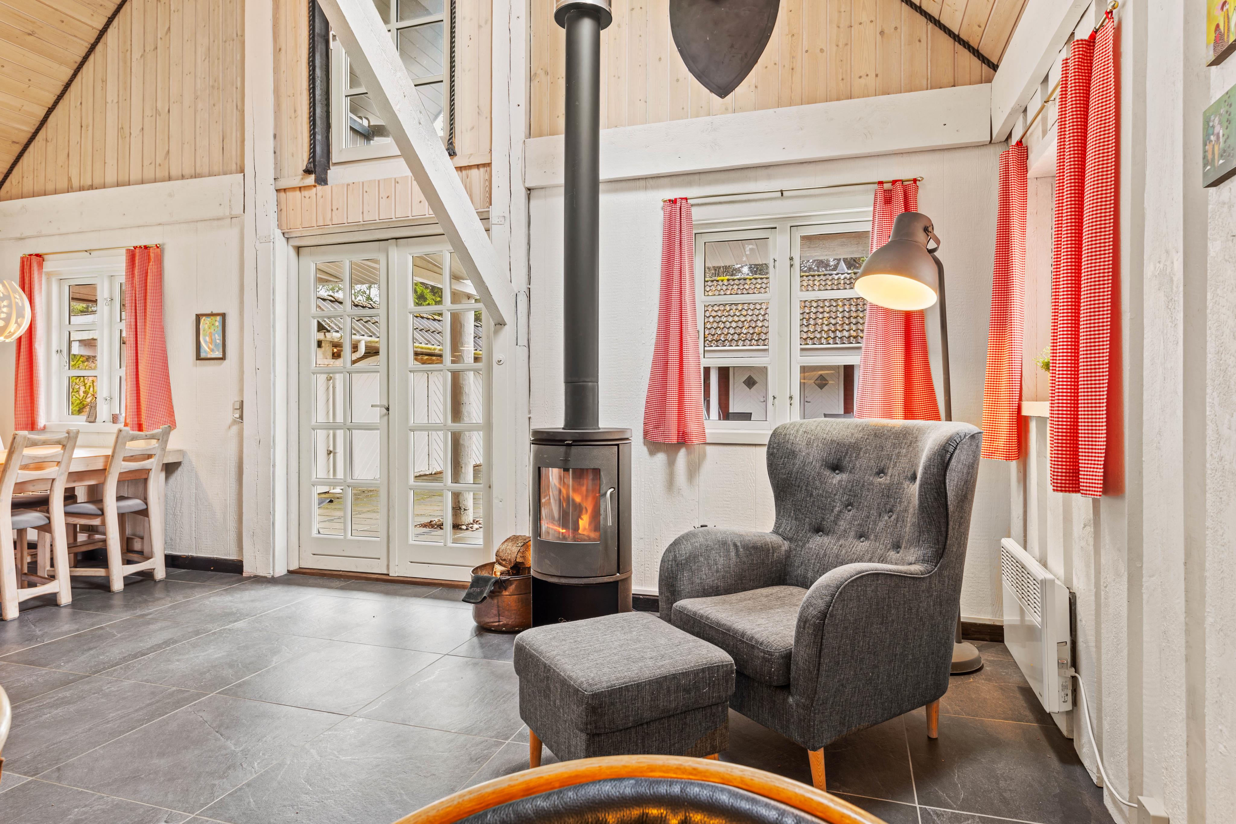 The interior of this cozily furnished holiday home impresses with its tasteful amenities and well-thought-out layout. A cozy alcove bed and a sofa corner in the lower living area invite you to relax by the fireplace. An energy-saving heat pump is also available for heating.
