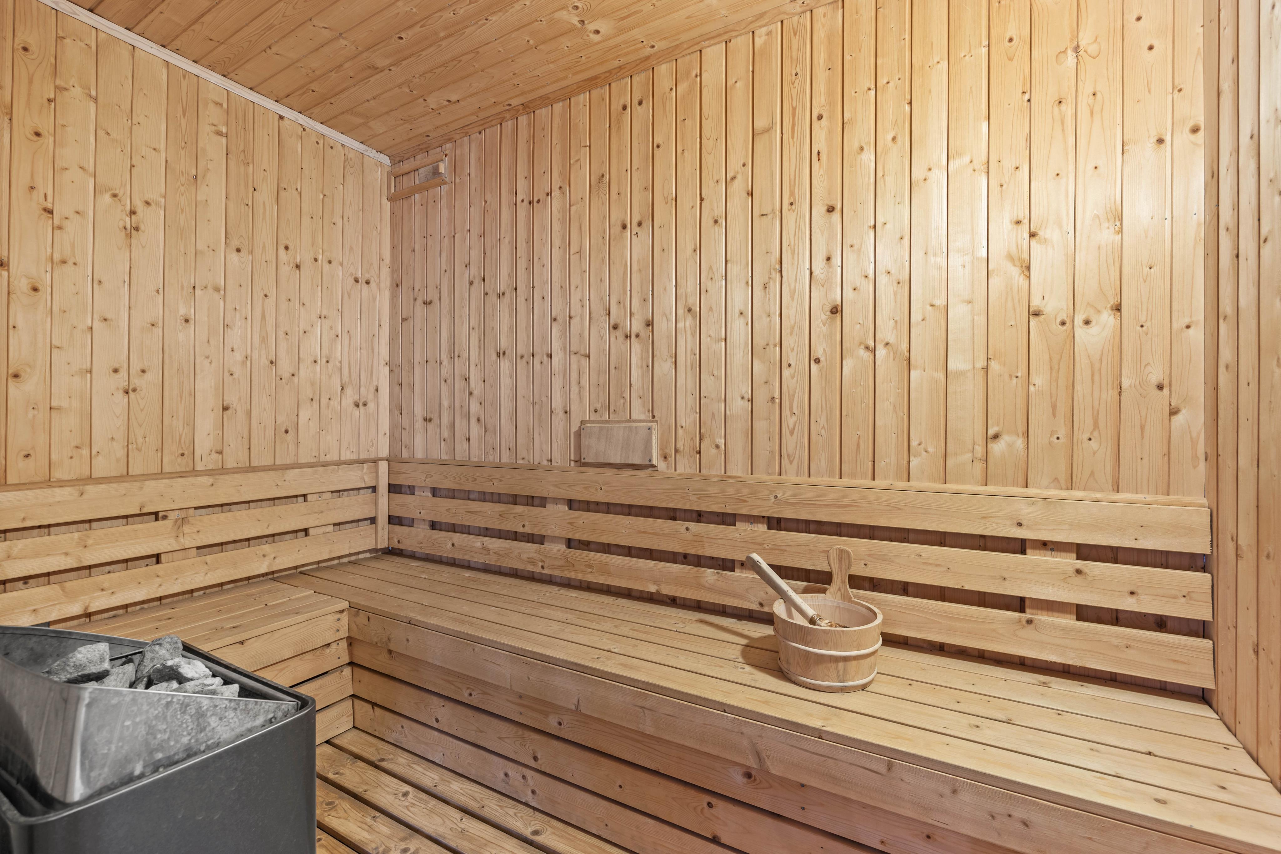 The outdoor sauna and hot tub offer relaxation in the open air. Enjoy a sauna session or two, or a soak in the hot water under the starry sky.