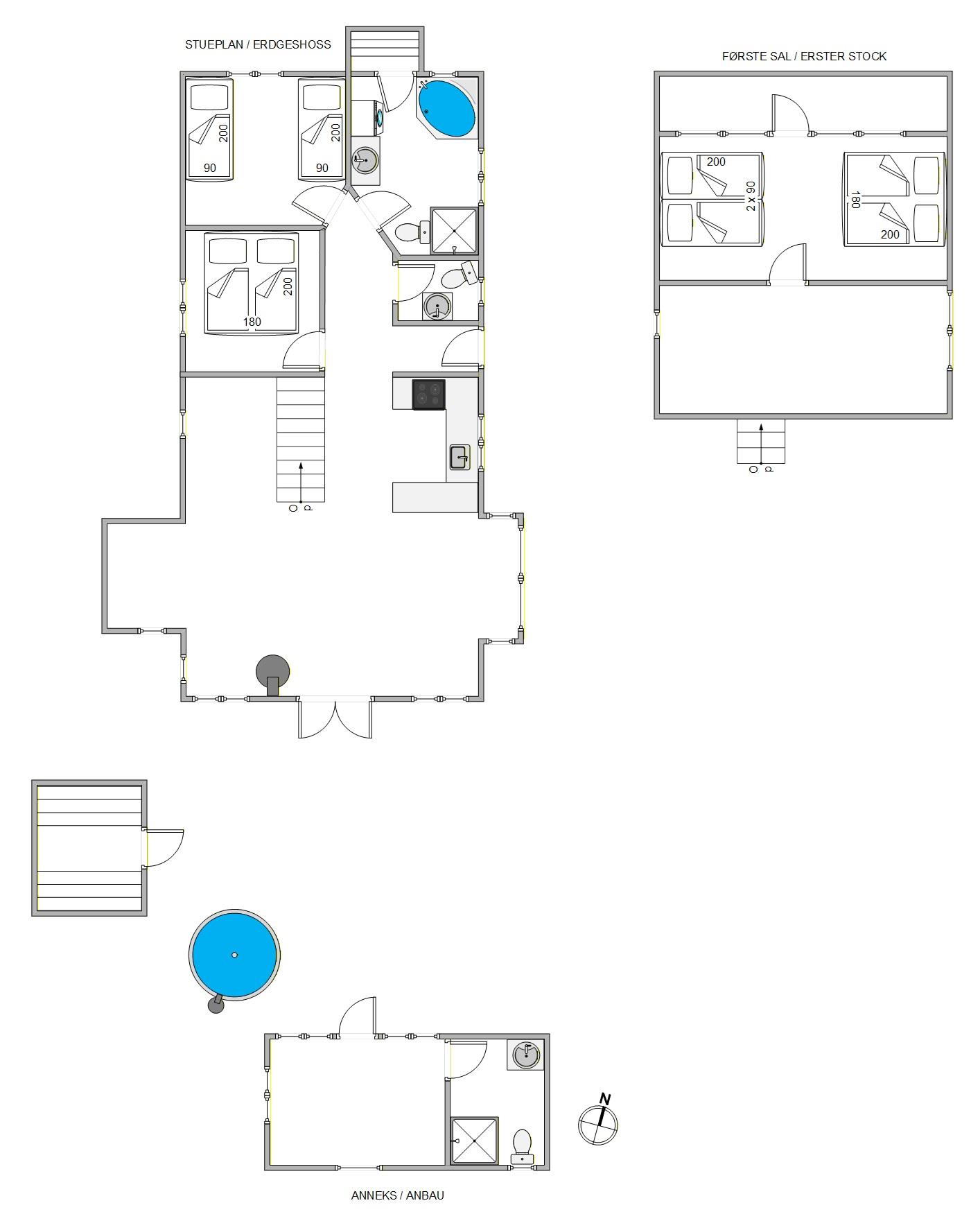 The 2 cozy double bedrooms are located on the ground floor. So that you can divide up comfortably, this holiday home has a large bathroom with a relaxing whirlpool as well as an extra guest WC. Another bathroom is available to you in the separate annex.