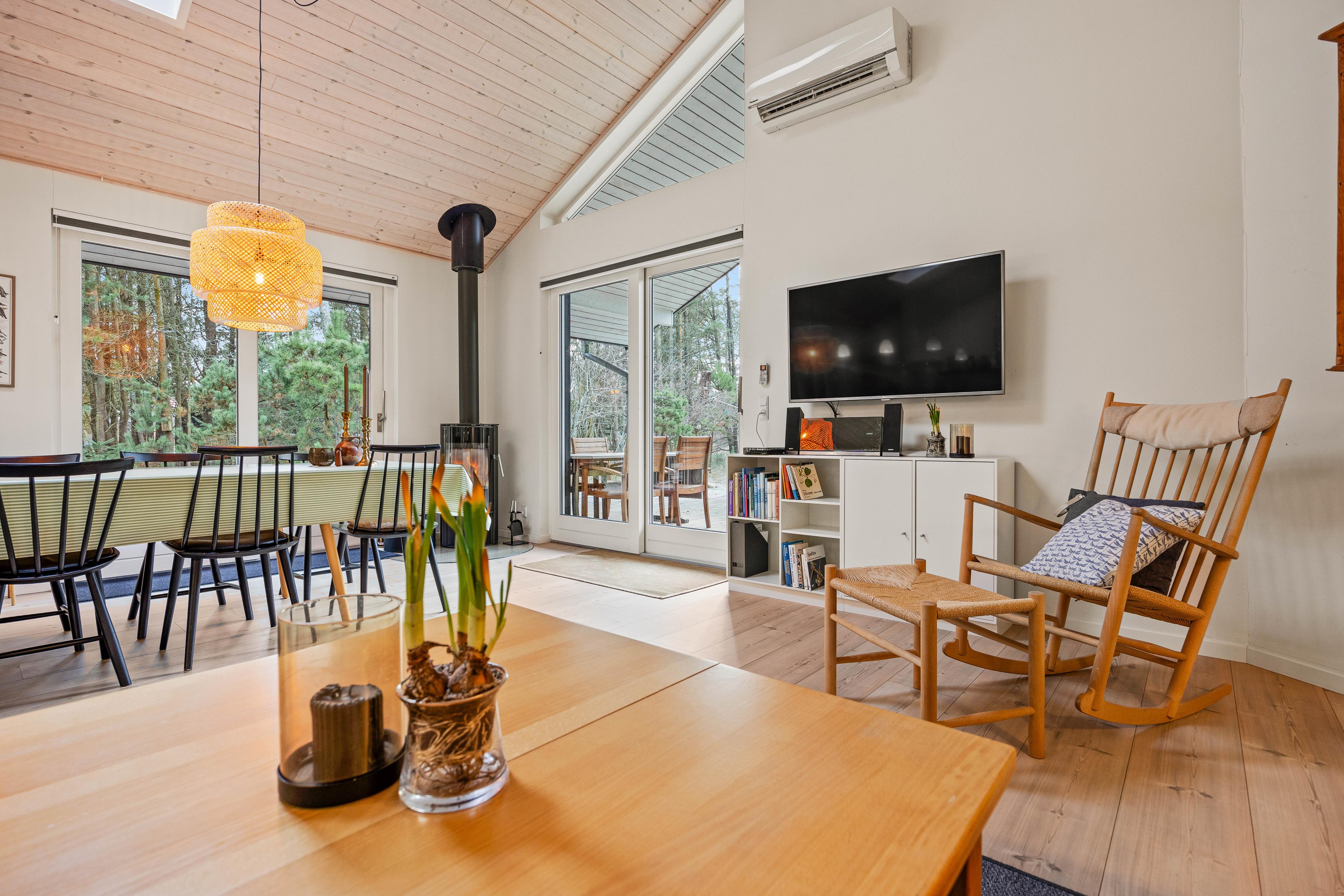 Welcome to this holiday home nestled among the pine trees in Ho, located on the charming Skallingevej 13. Here you’ll find a peaceful retreat where comfort meets nature—whether you’re enjoying cozy evenings by the fireplace or soaking up the sun on the spacious terrace.