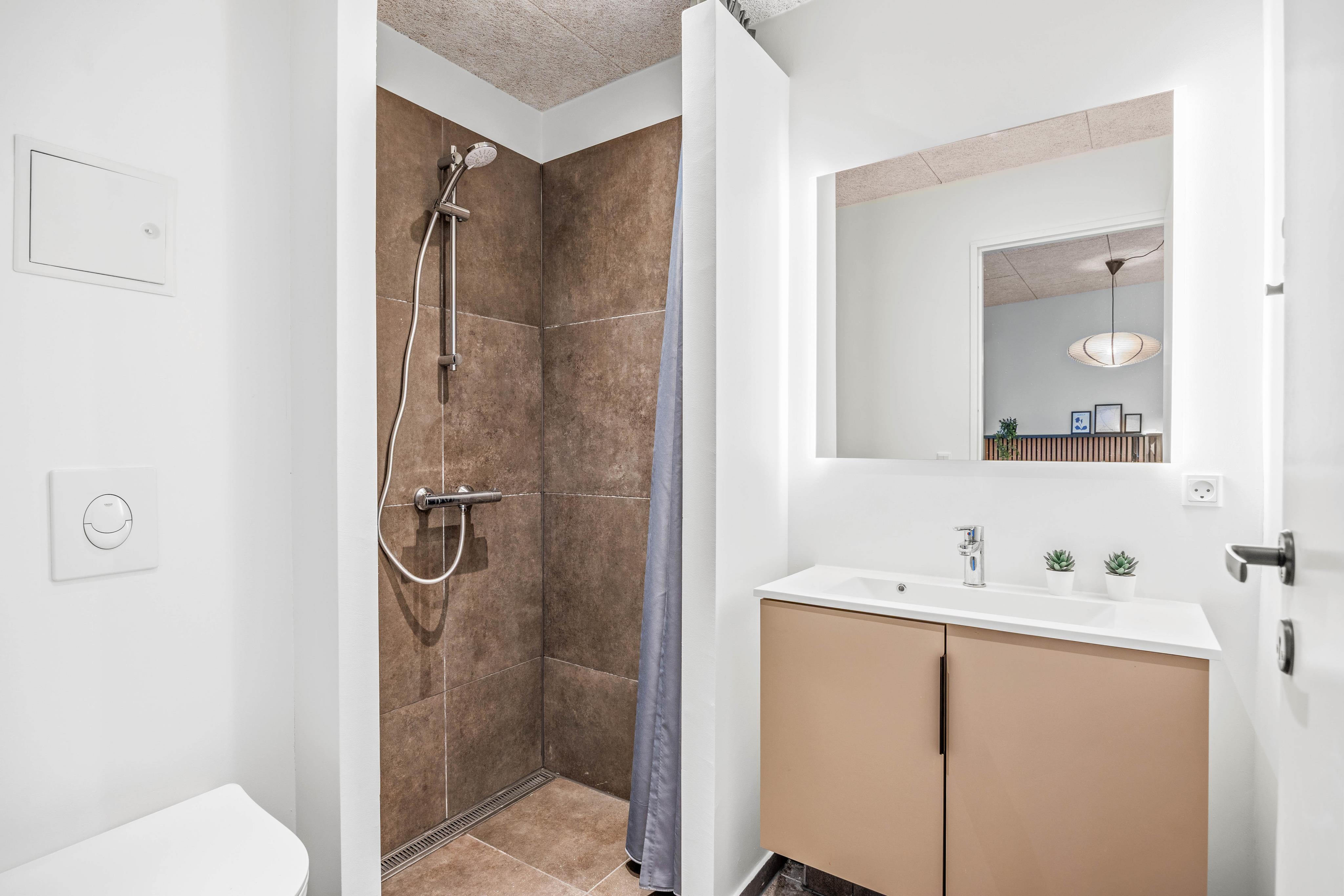 Discover this impressive holiday retreat at Midtparken 29 in Arrild, offering 179 square metres of pure comfort and an electric car charging point. Accommodating up to 10 people, with 5 bedrooms featuring 5 comfortable double beds and 4 bathrooms, you'll feel right at home. Set in beautiful natural surroundings near the island of Rømø and the charming towns of Tønder and Ribe, this modern holiday home in Arrild was built in 2025. Enjoy the soothing warmth of the wood-burning stove and benefit from the smart air-to-water heat pump maintaining pleasant temperatures. Special features include a home cinema room, outdoor hot tub, outdoor shower, and covered terrace - just some of the highlights of your stay. Unwind after an eventful day and enjoy the peace and tranquillity of your surroundings. Up to 2 dogs are also welcome here.
