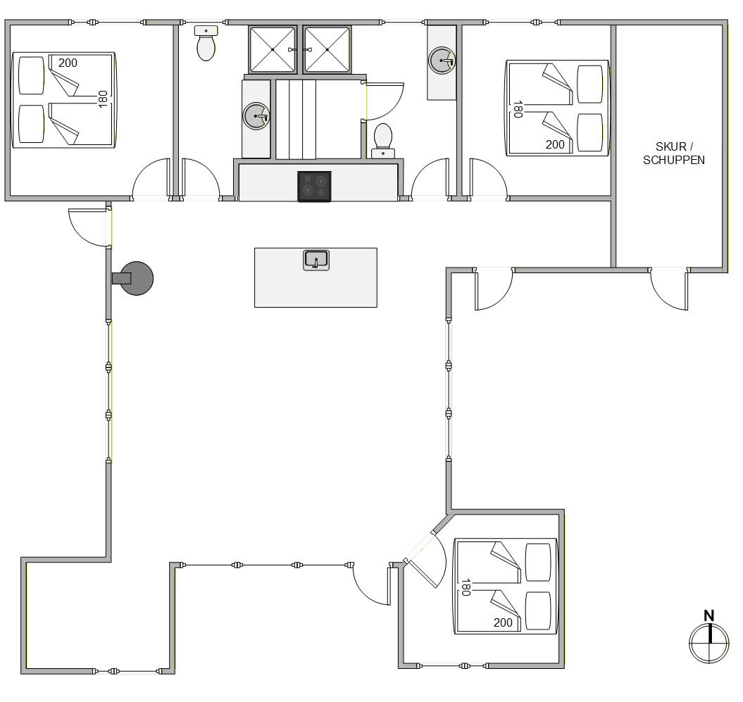 The holiday home accommodates up to 6 people and features three lovely bedrooms with double beds. The holiday home also has two bathrooms with underfloor heating, ensuring no queues or waiting times in the morning.
