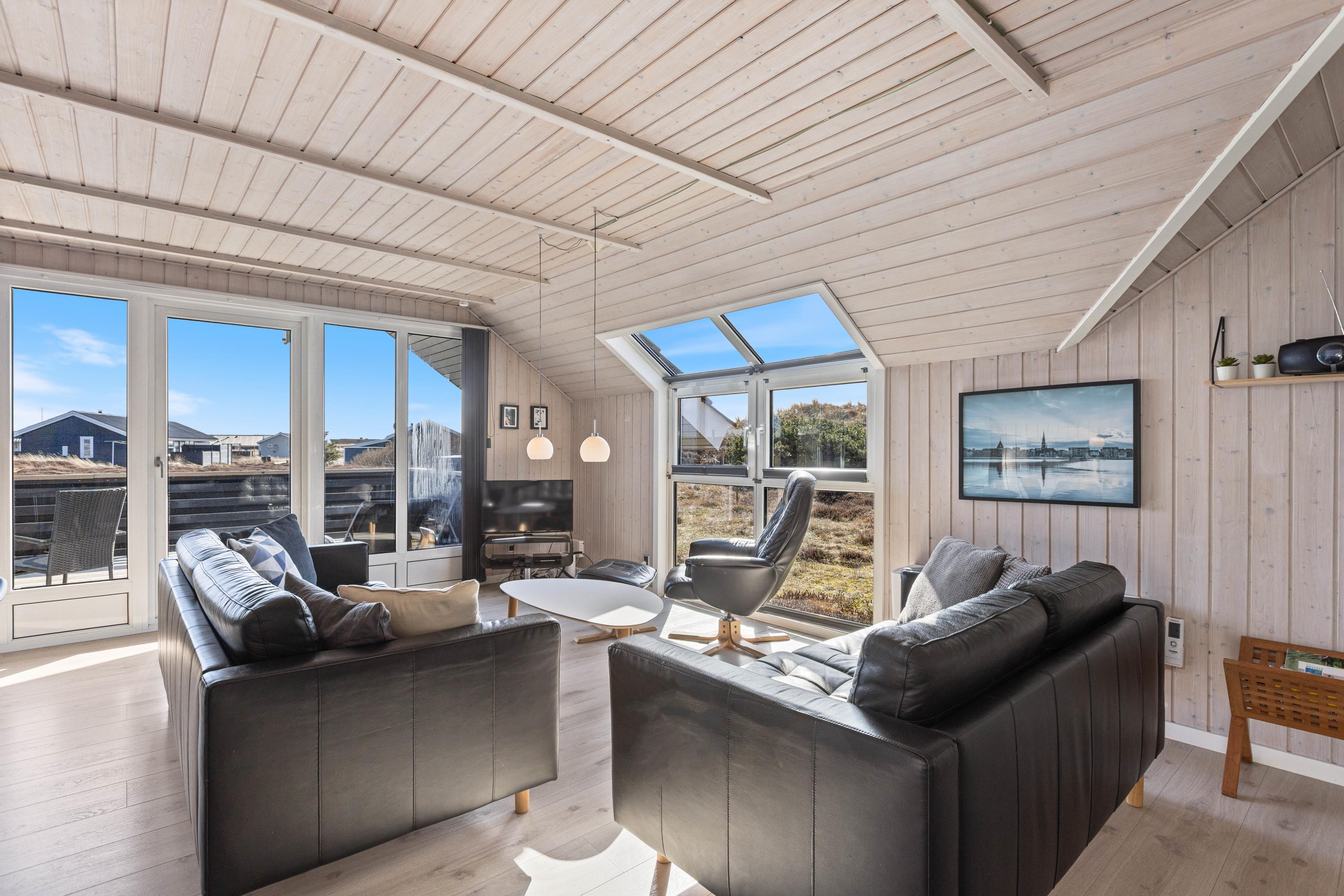 Your beautiful holiday home awaits you at Bjerregårdsvej 305, ideally situated close to the sea and beach. The holiday home features a large, enclosed terrace where the whole family can relax comfortably, sheltered from the wind. The cosy interior with wooden ceilings and exposed beams, plus a spacious bathroom featuring a sauna and whirlpool for relaxation, complete the holiday experience.