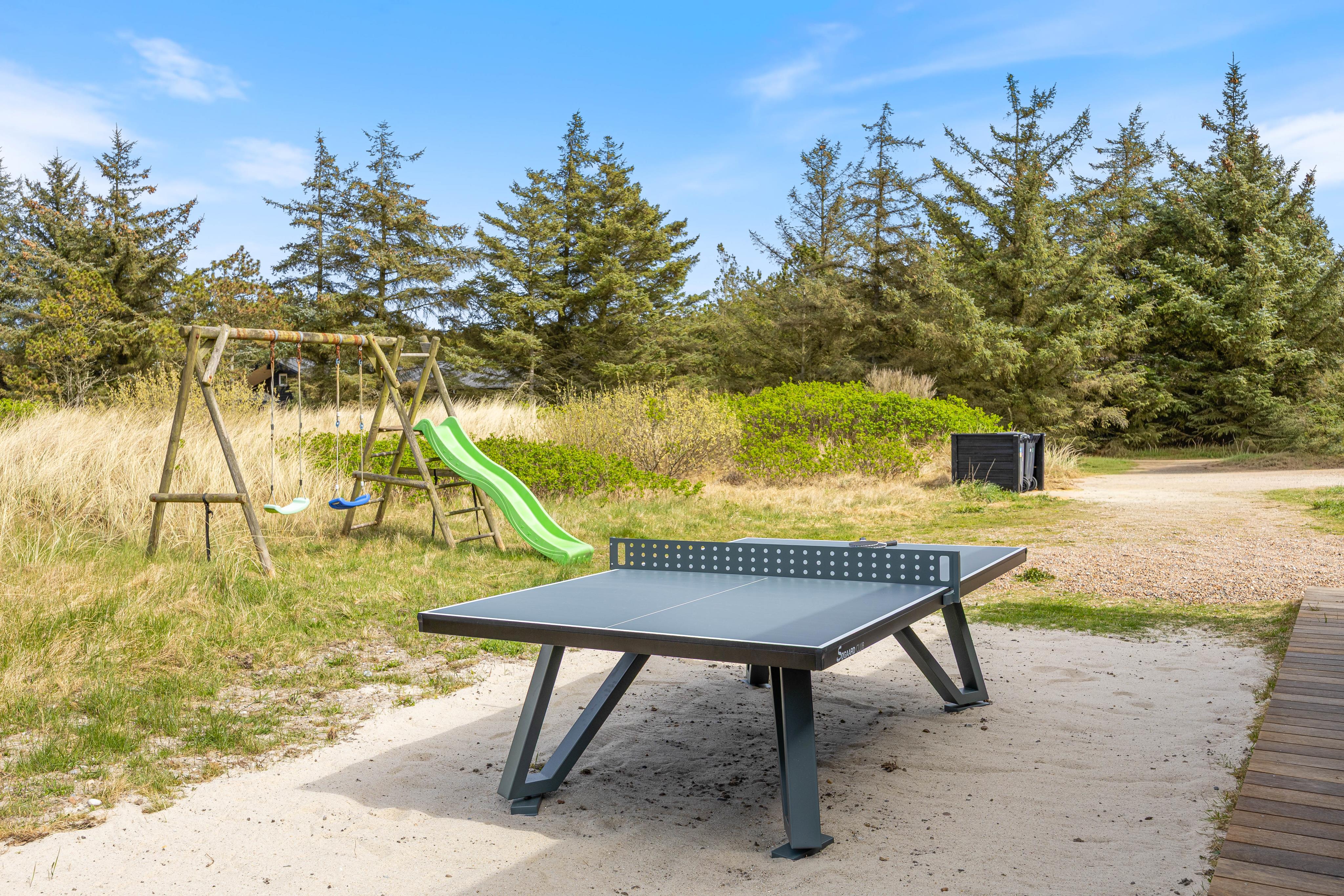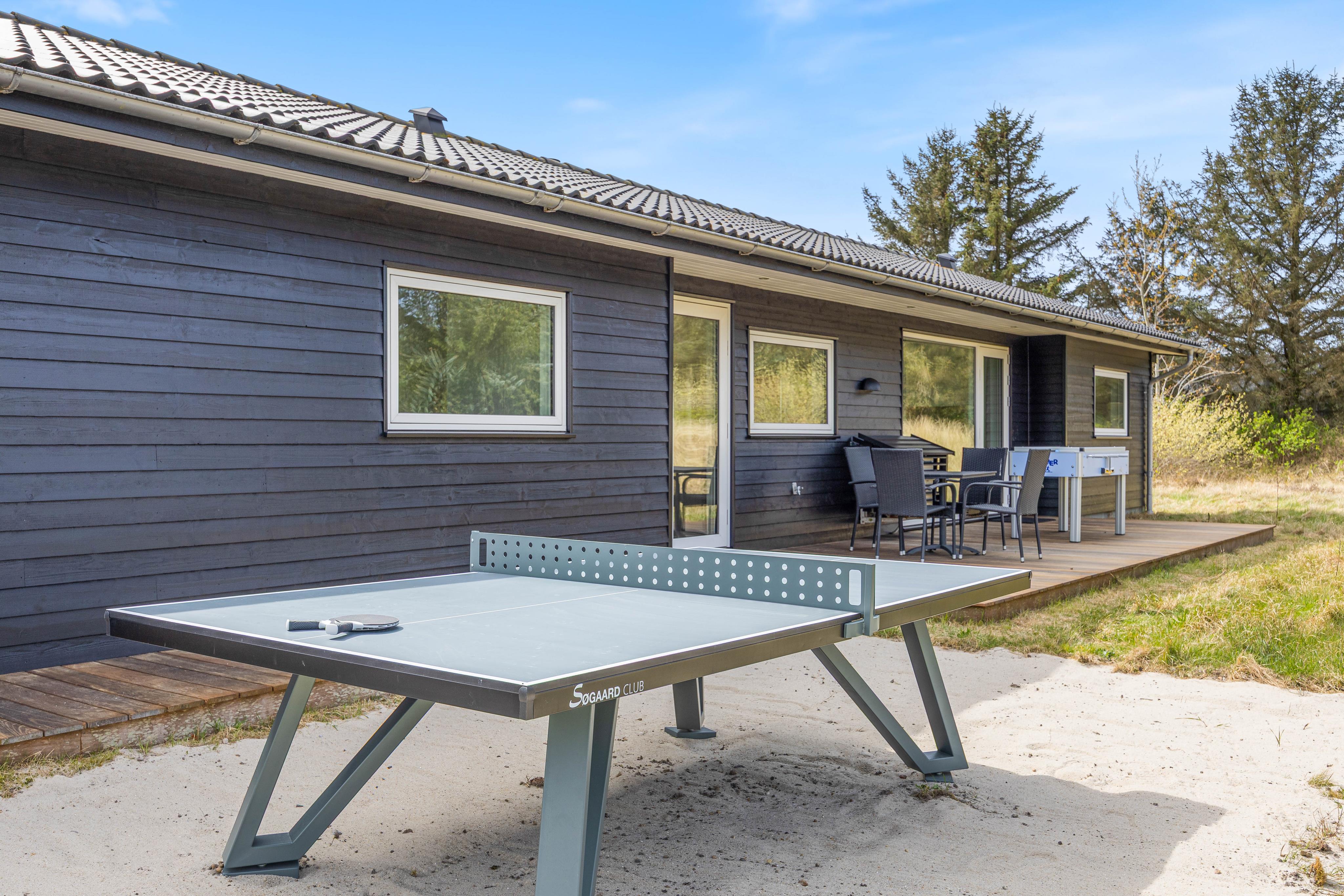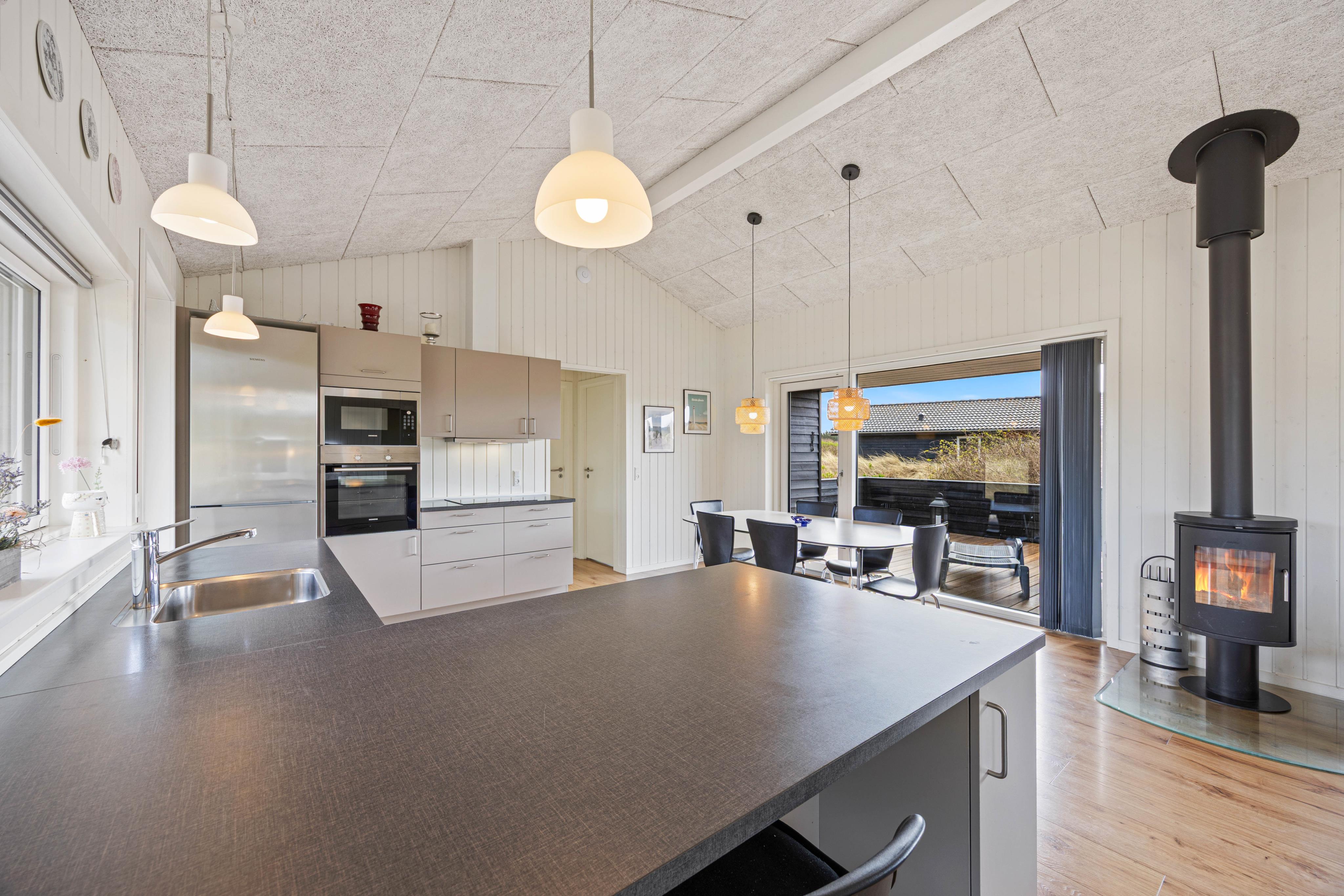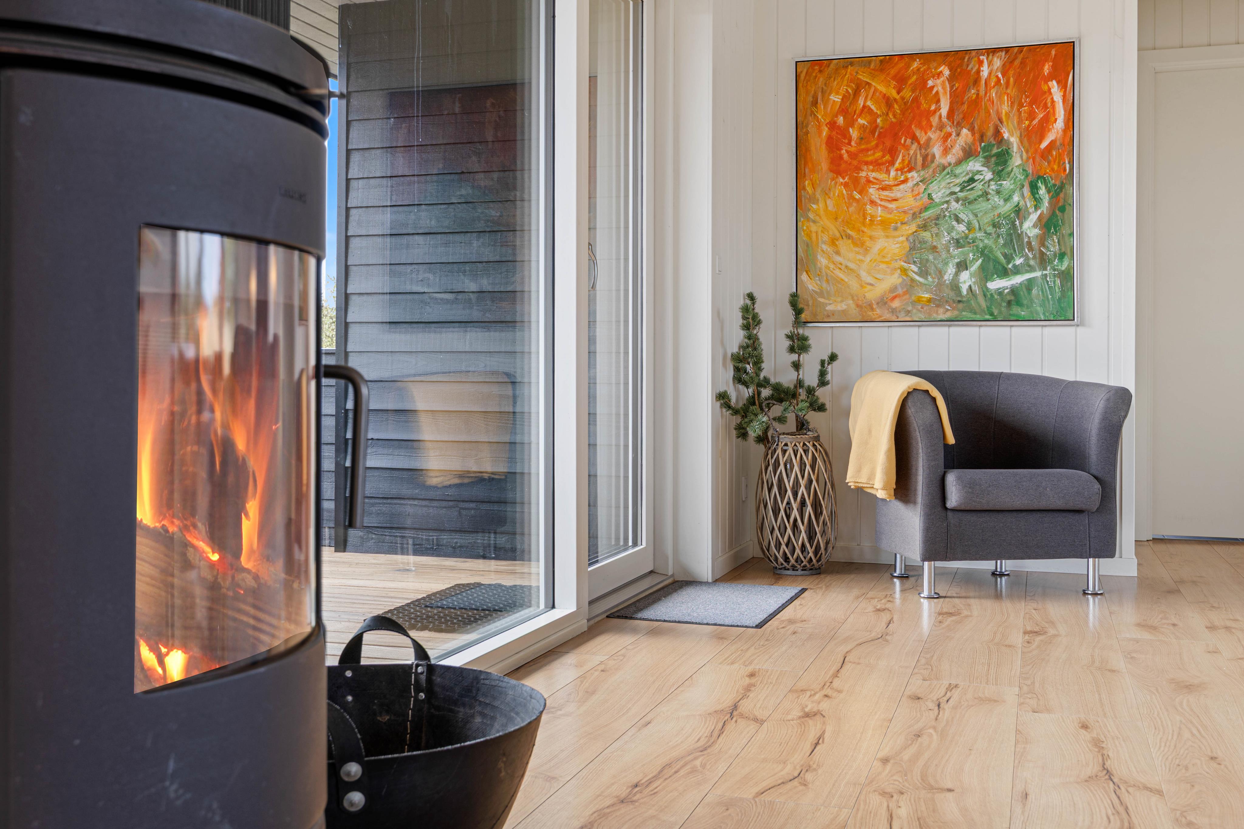 The spacious, well-equipped open-plan kitchen and living area forms the heart of the summer house, where you can gather for communal cooking, cosy movie nights on the sofa, or social games. There is also a foosball table and table tennis, providing extra fun for both children and adults. Light the wood-burning stove and enjoy the crackling flames in the background – creating that authentic hygge atmosphere.