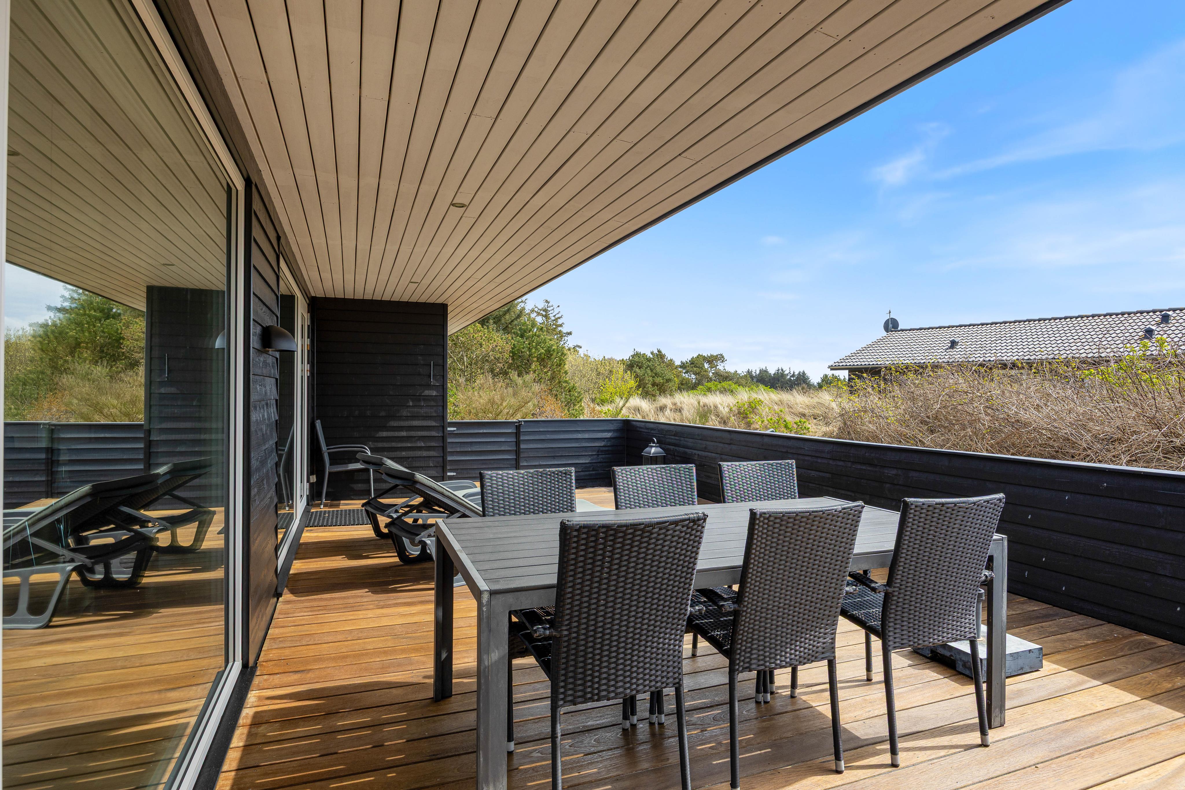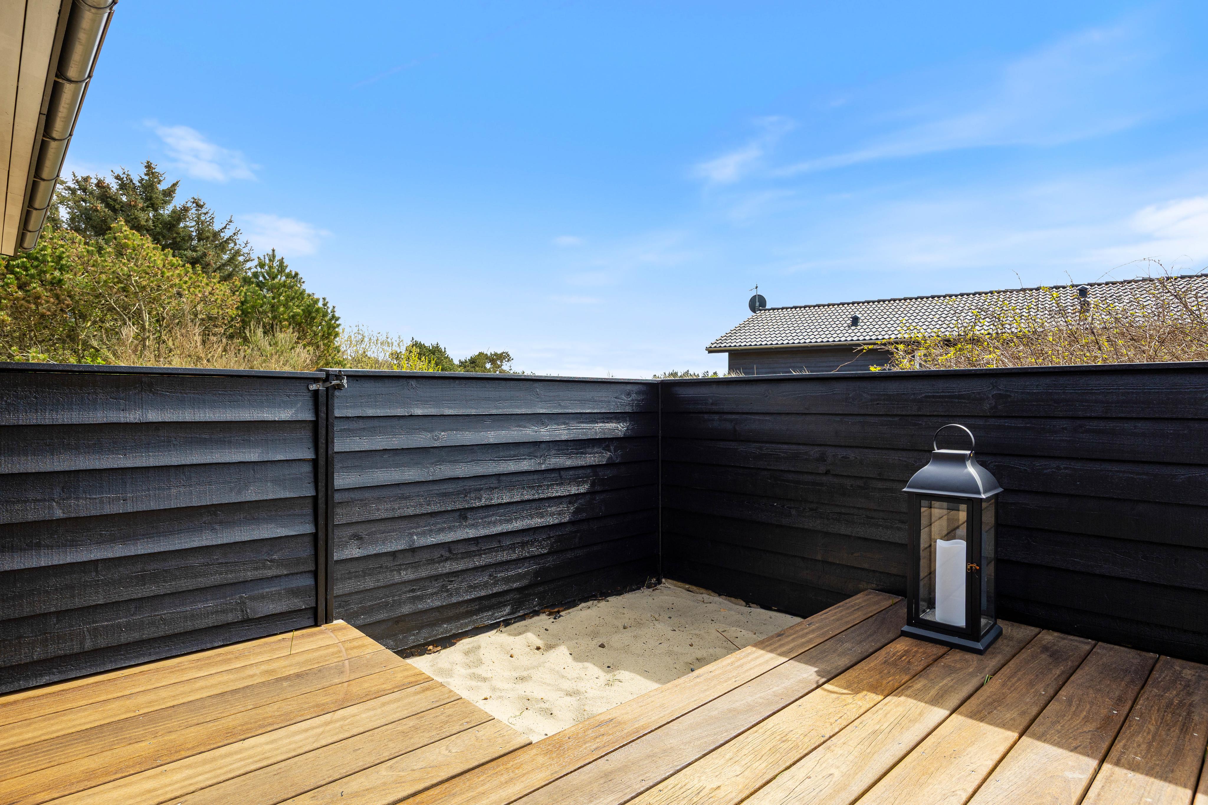 Relax on the practical, enclosed wooden terrace