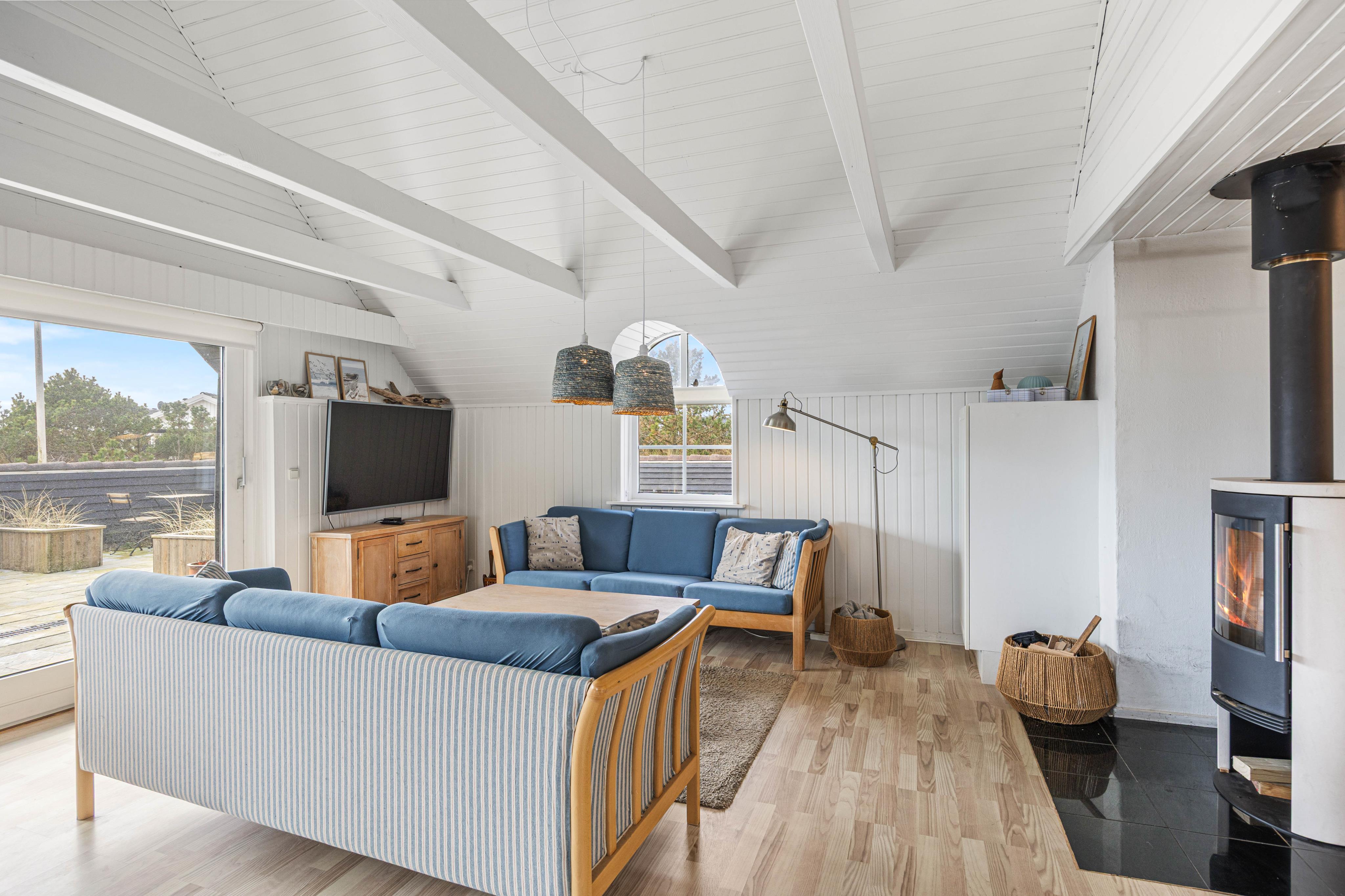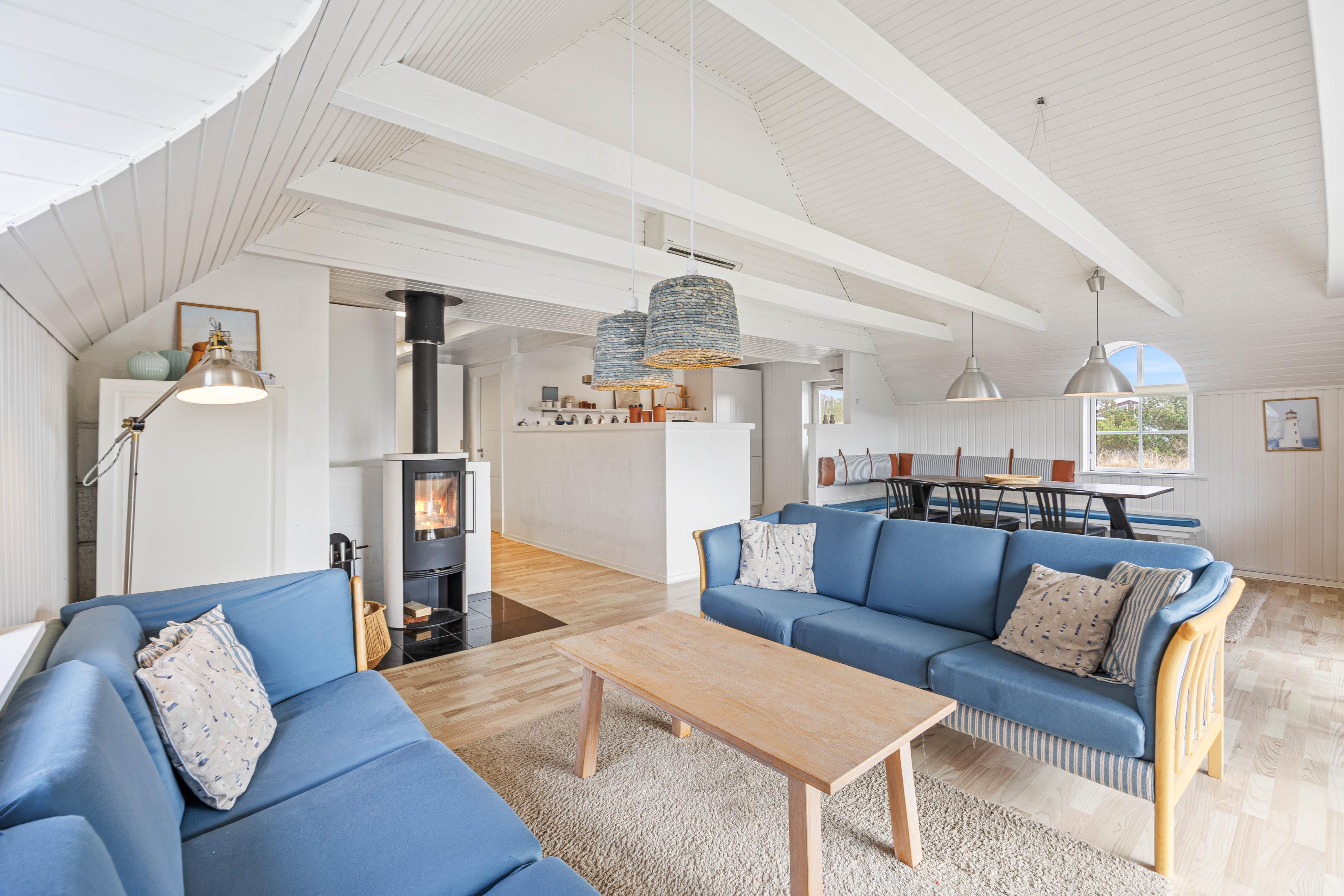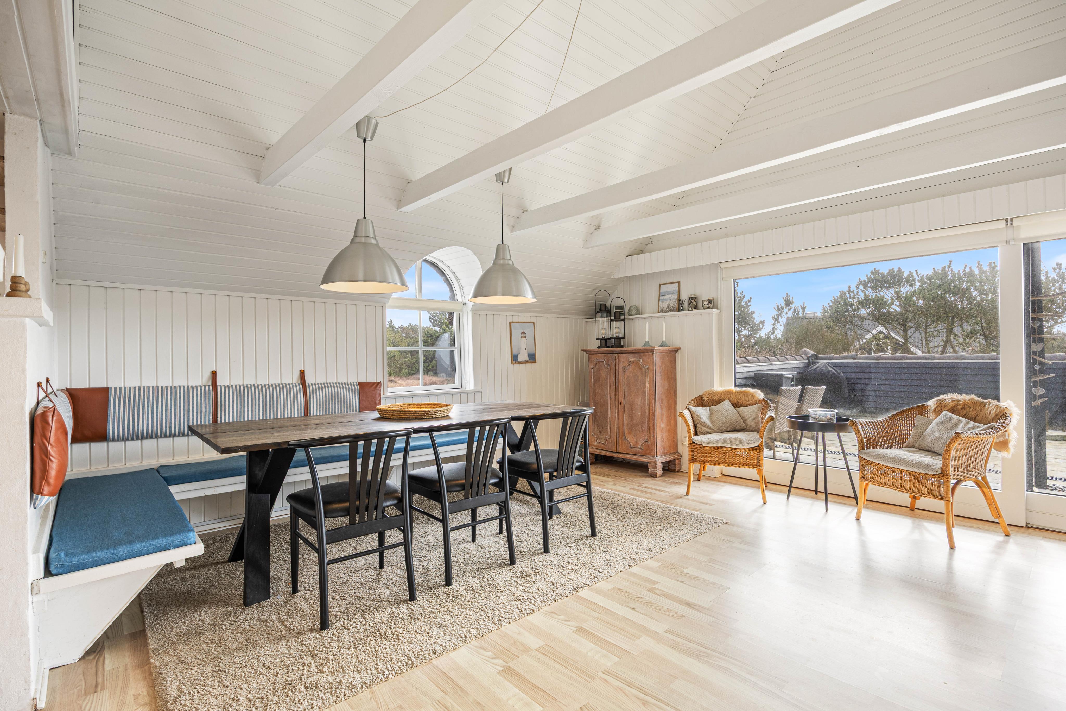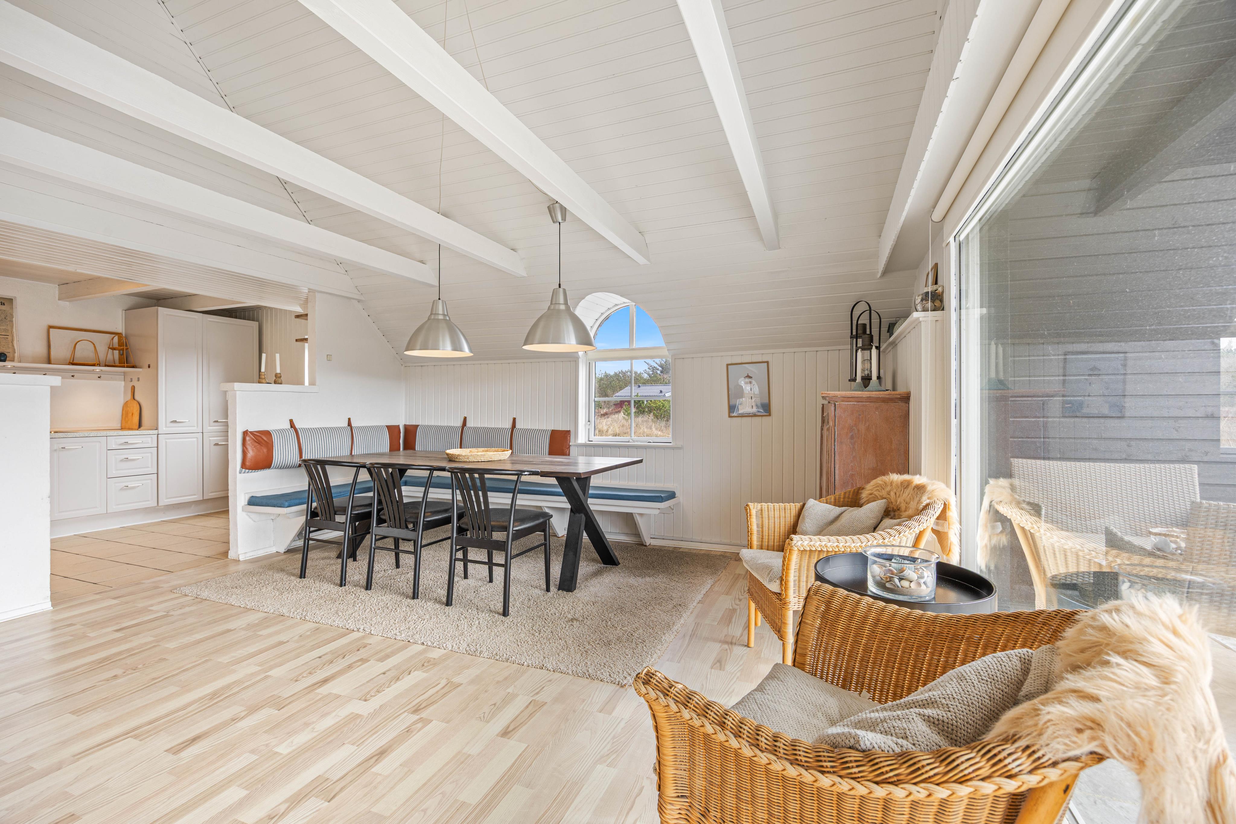 This charming holiday home accommodates 8 people and welcomes your dog. The bright living room leads to a large, enclosed and partially covered terrace - ideal when travelling with small children or a dog. An energy-efficient heat pump provides economical heating. Here you can enjoy a classic Danish holiday experience on the North Sea coast. Welcome to Denmark's west coast.