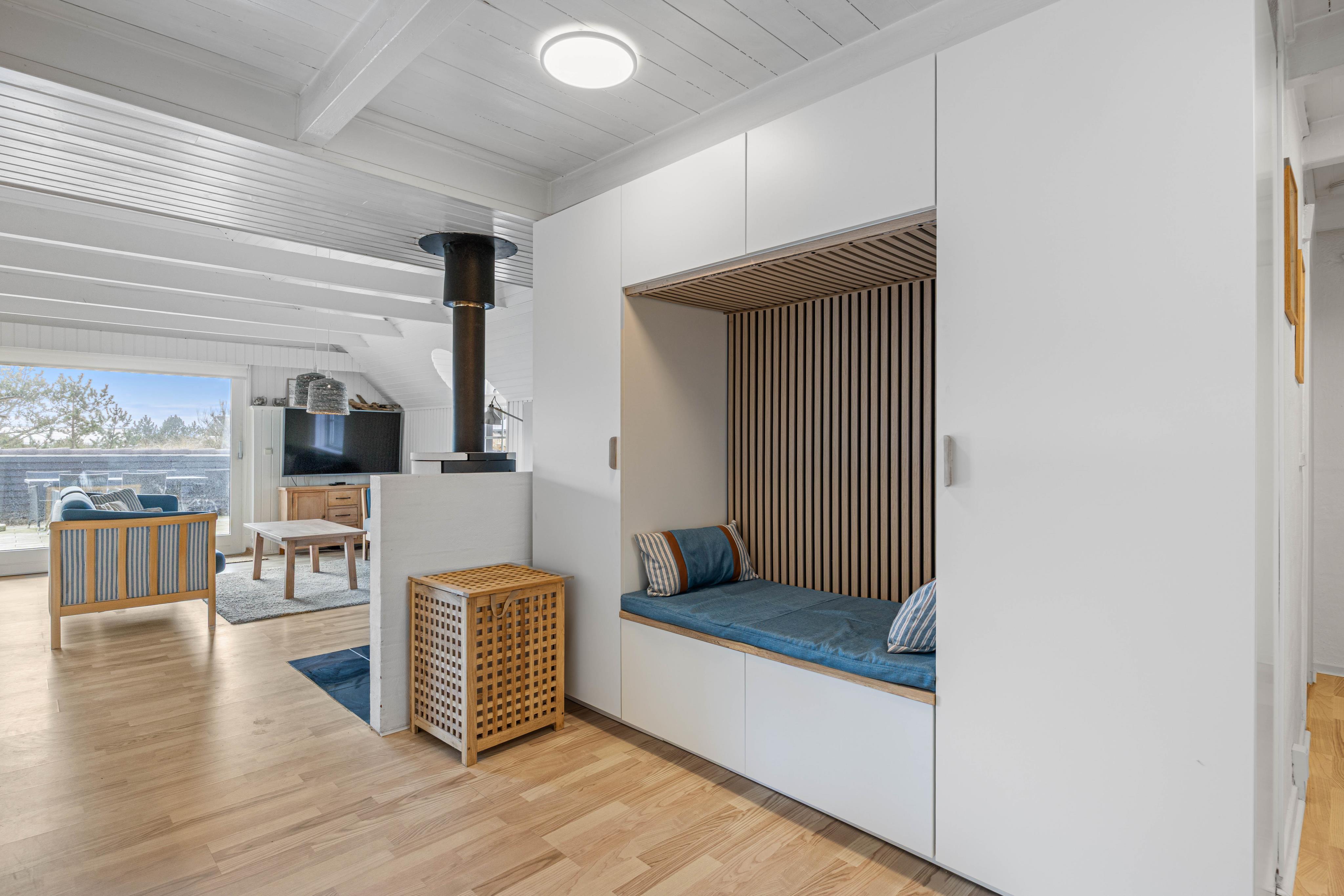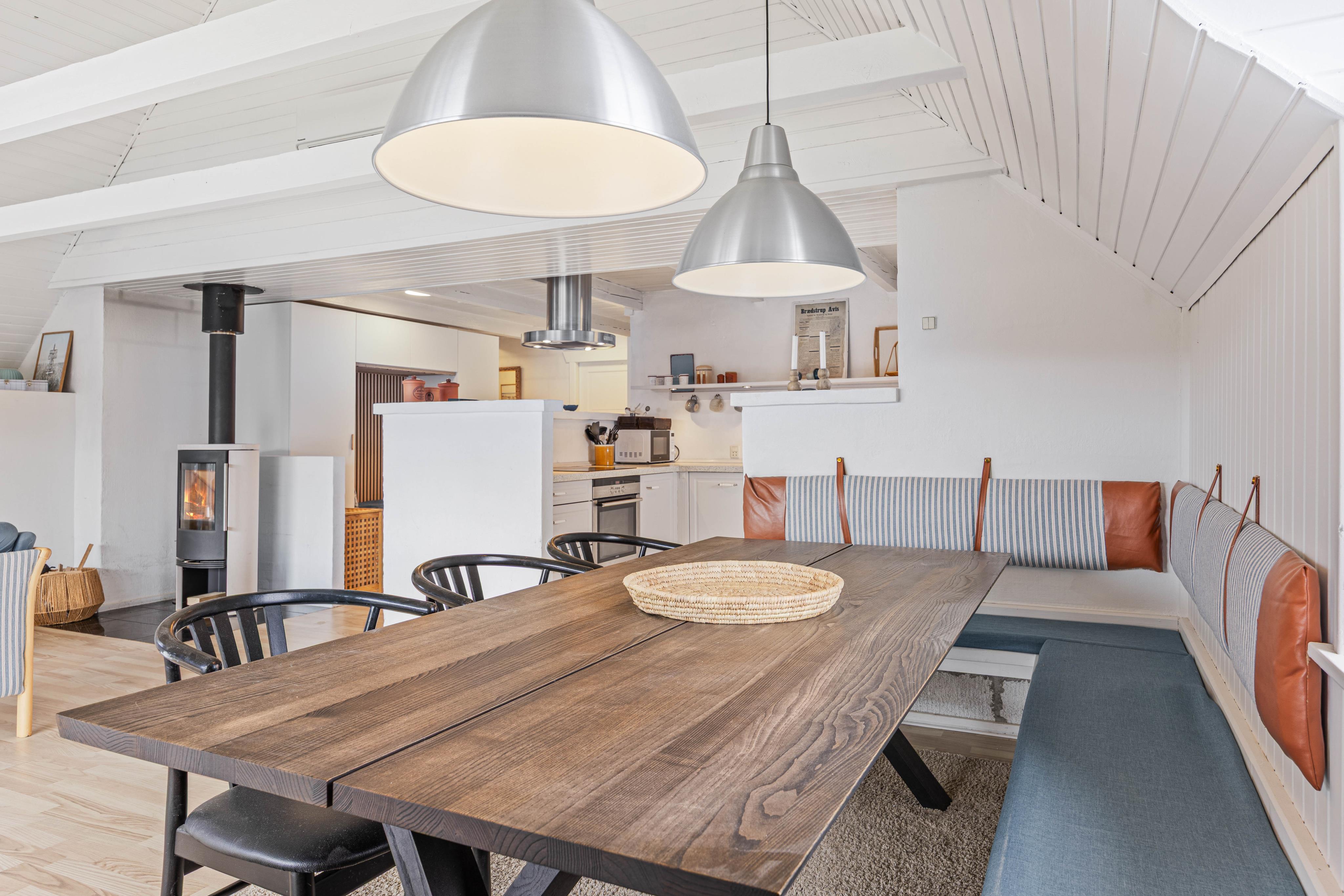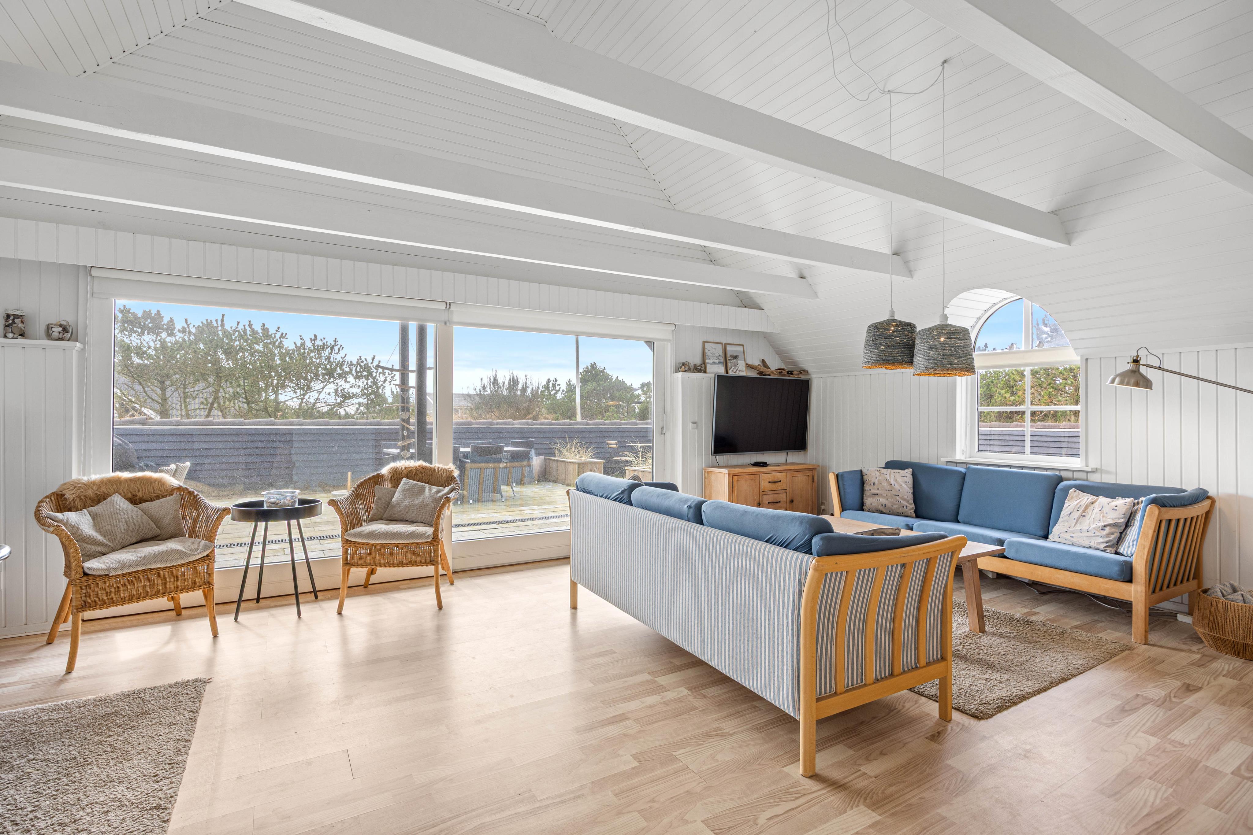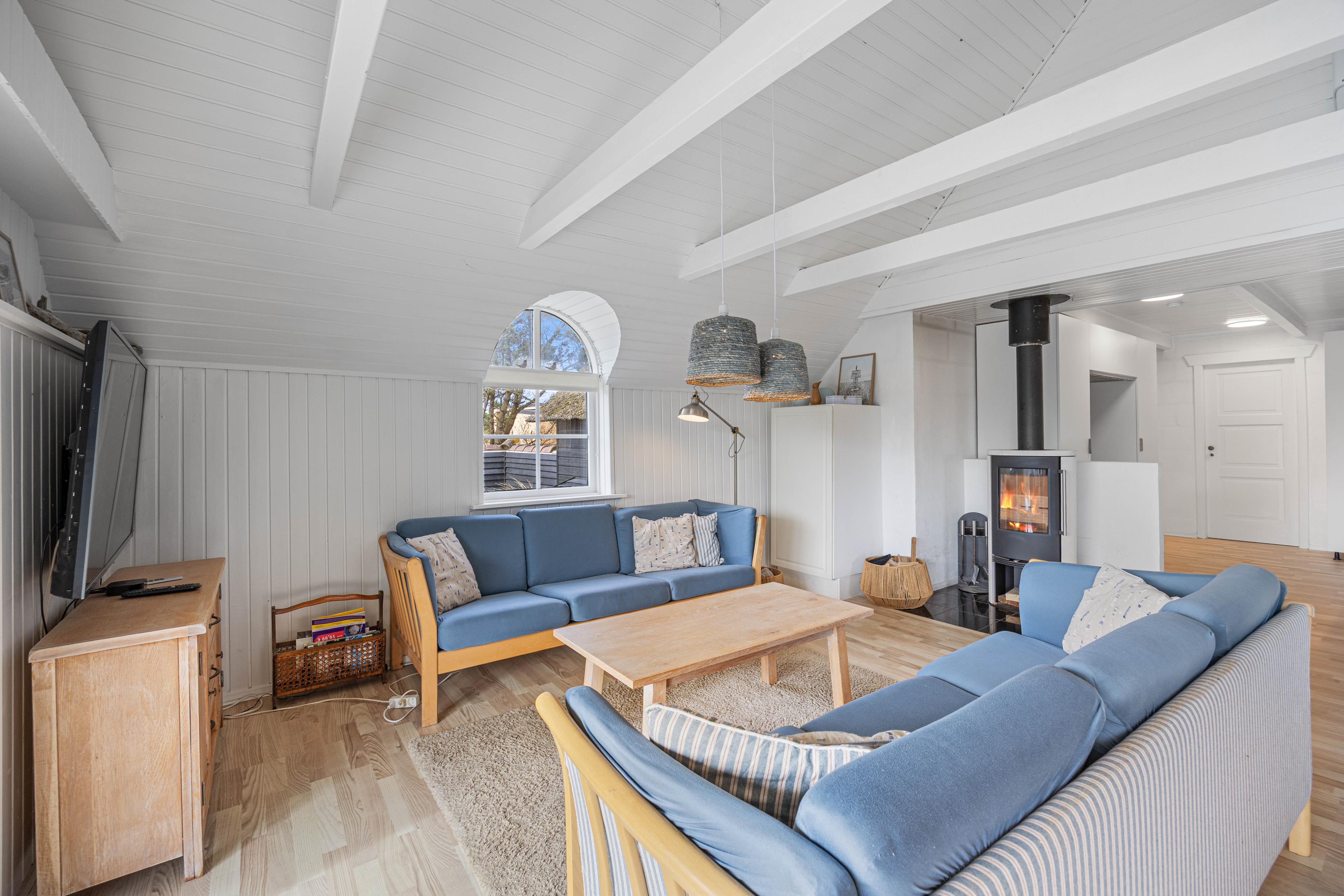 This charming holiday home accommodates 8 people and welcomes your dog. The bright living room leads to a large, enclosed and partially covered terrace - ideal when travelling with small children or a dog. An energy-efficient heat pump provides economical heating. Here you can enjoy a classic Danish holiday experience on the North Sea coast. Welcome to Denmark's west coast.