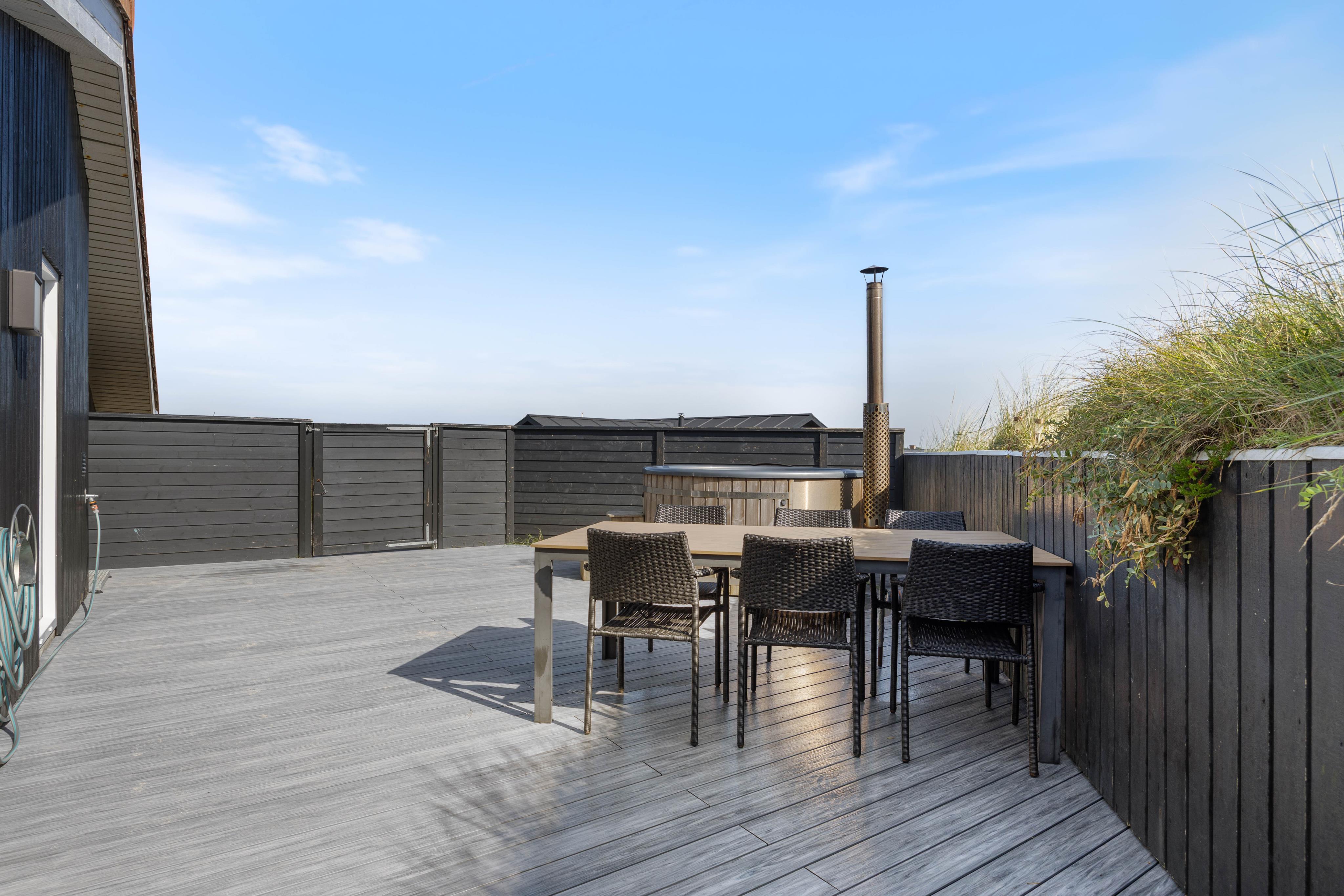 One of the holiday home's highlights can also be found on the terrace: a wooden hot tub that you can heat as desired. There's hardly anything better than enjoying the fresh sea air while relaxing here.