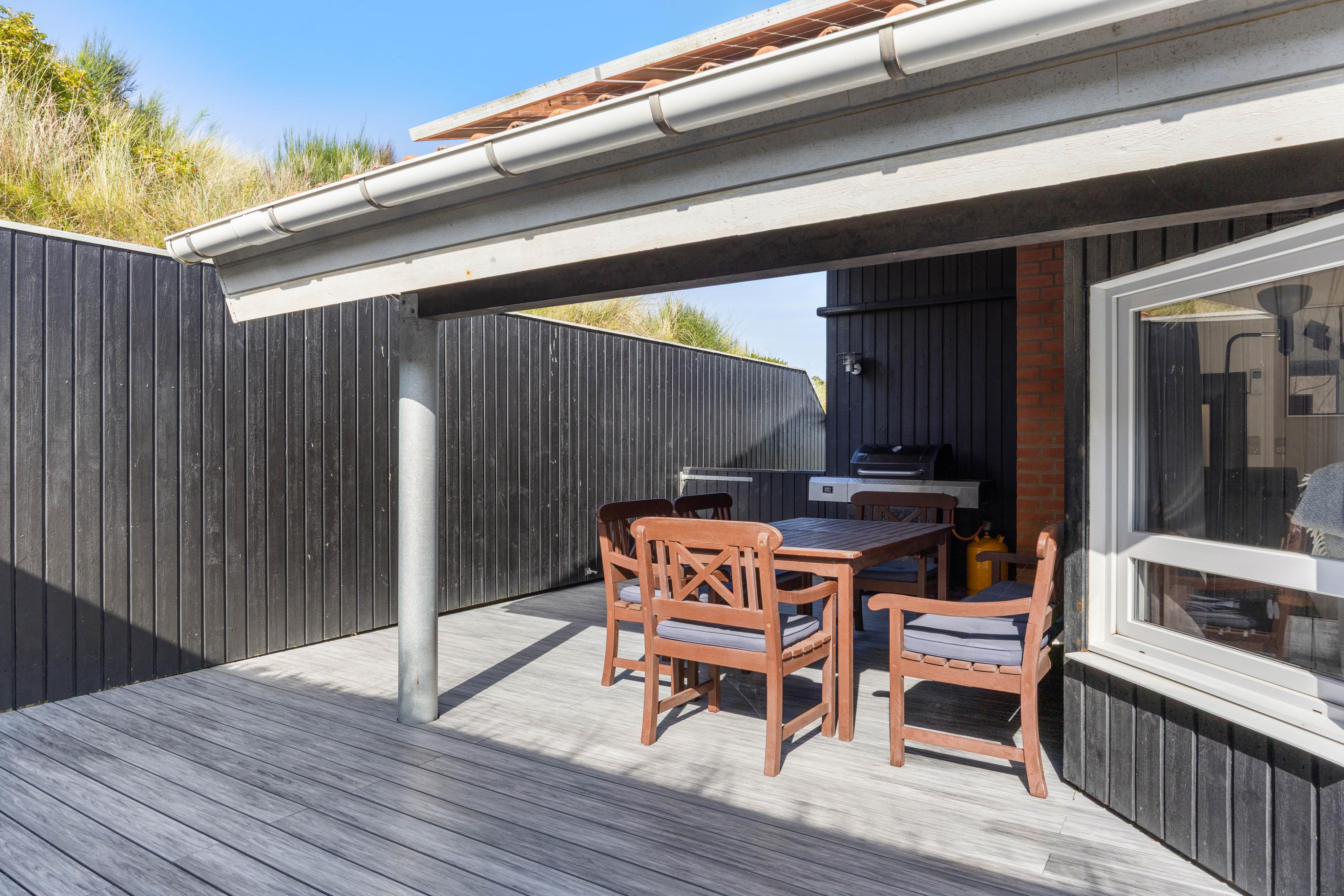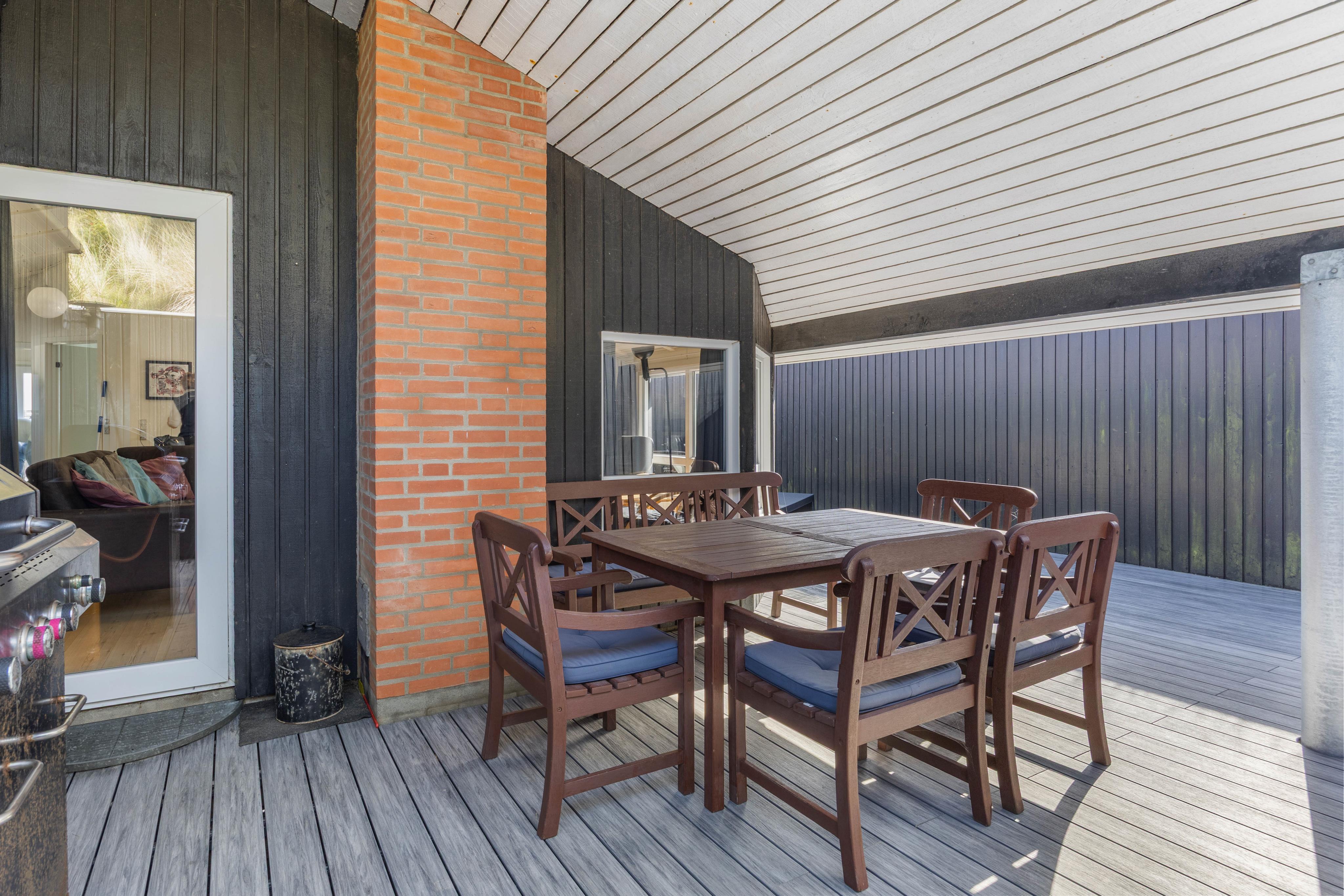 The holiday home features a beautiful terrace that extends from east through south to west. The eastern terrace area is particularly pleasant to use from morning through to late afternoon. Afterwards, you can enjoy the southern terrace area, where you'll have complete privacy, as well as the western terrace section.