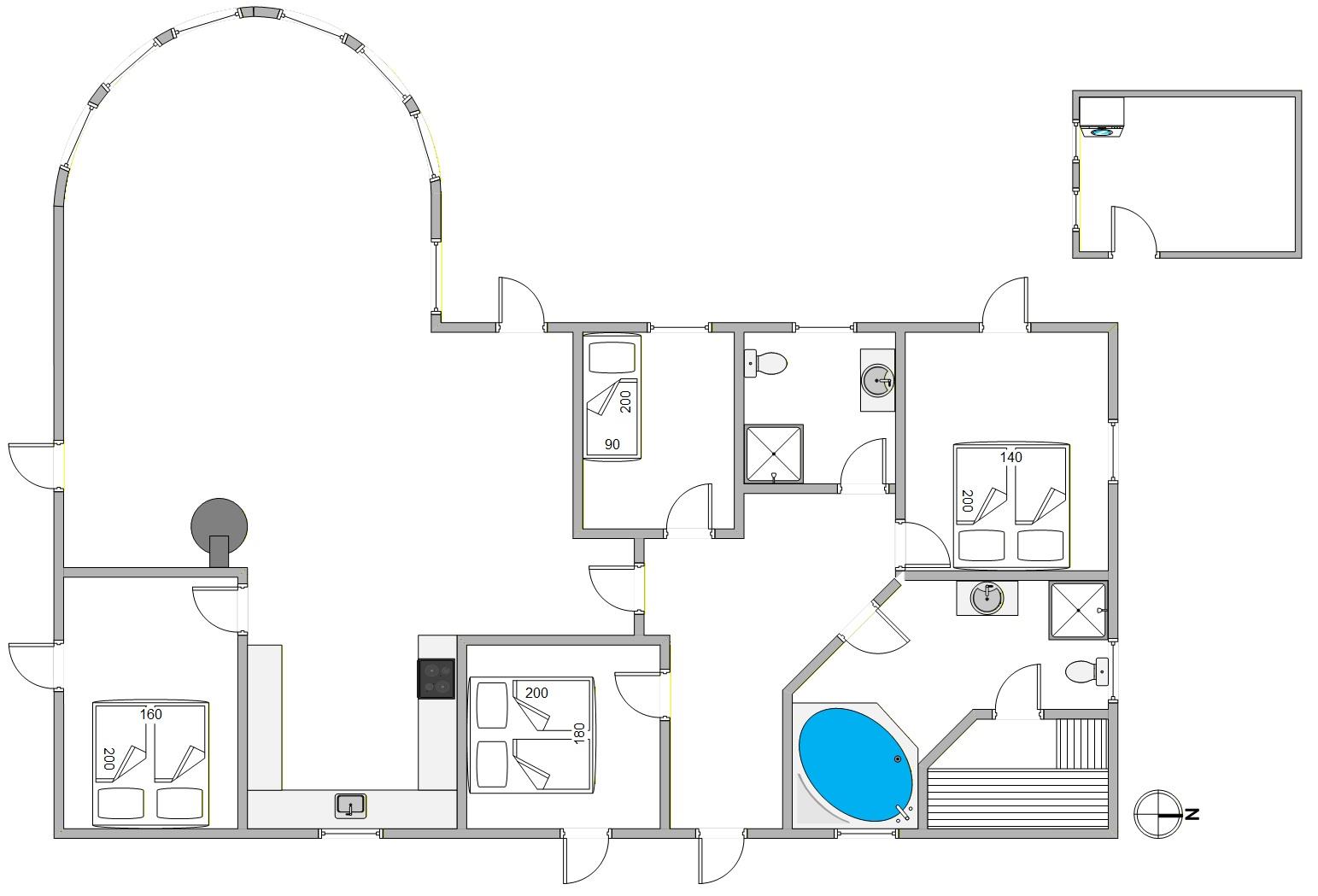 A glass windbreak on the two terraces would further enhance the house. The location of the house is super perfect. A remote control with numbers would have been better for us :-).