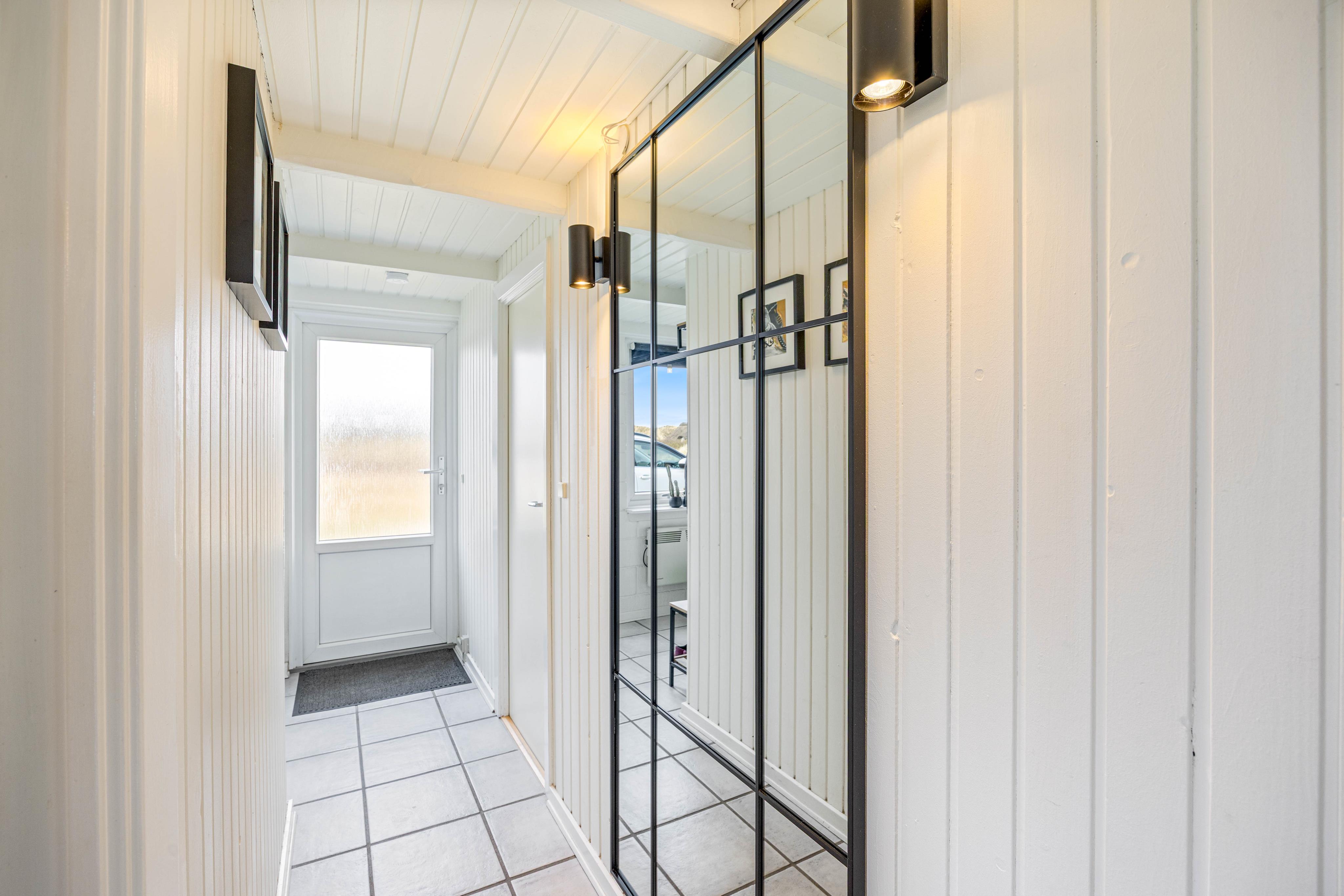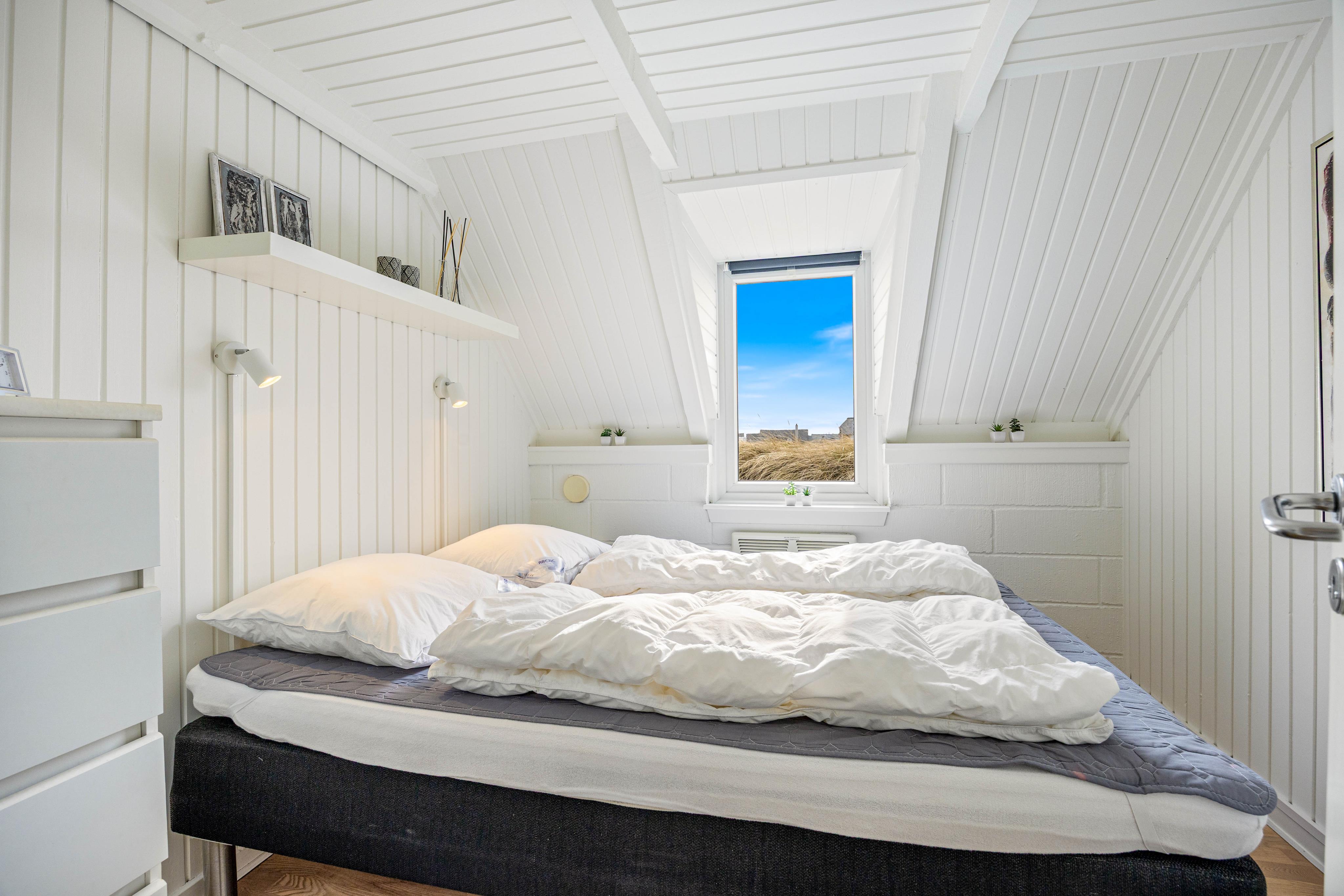 Enchanting holiday home with sauna in Klegod. The holiday home sits on a natural plot just 350 metres from the North Sea. Bright, welcoming and functionally furnished. Features two bedrooms, a spacious sleeping loft and easy-clean flooring in the kitchen and living room.